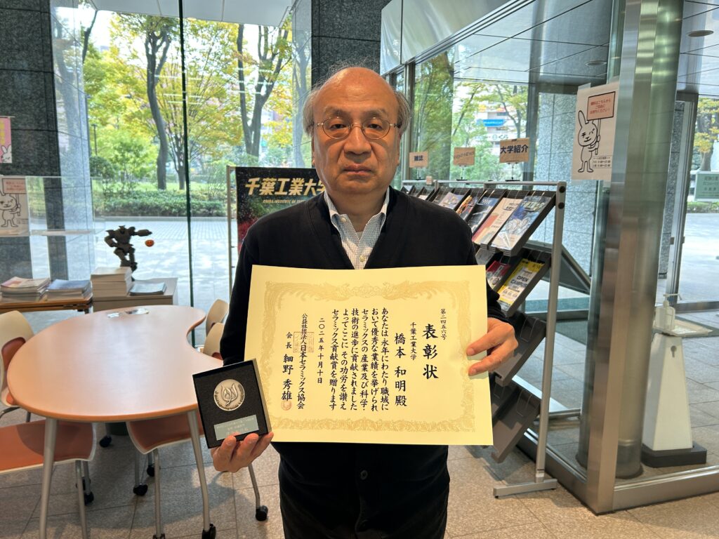 受賞理由: 現在に至るまでにセラミックスに関する研究発表を547件を,そのうち日本セラミックス協会での発表件数150件を行い,これらの研究を通して多くの大学院生を産業界に輩出した。また,生体関連材料部会の幹事を24年間務め,とくにβ型リン酸三カルシウムの研究では,緻密体や多孔体の製造プロセスを提案し,セラミックスの教育,研究,普及に貢献した。