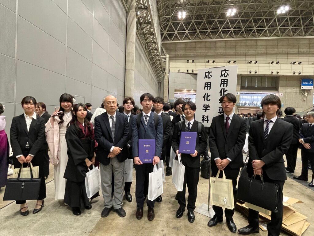 令和7年度千葉工業大学学位記授与式 メンバー 2026.03.25 2026年3月22日に幕張メッセにて千葉工業大学学位記授与式が挙行されました。新たに研究室を巣立っていく4年生および修士2年生はおめでとうございます。